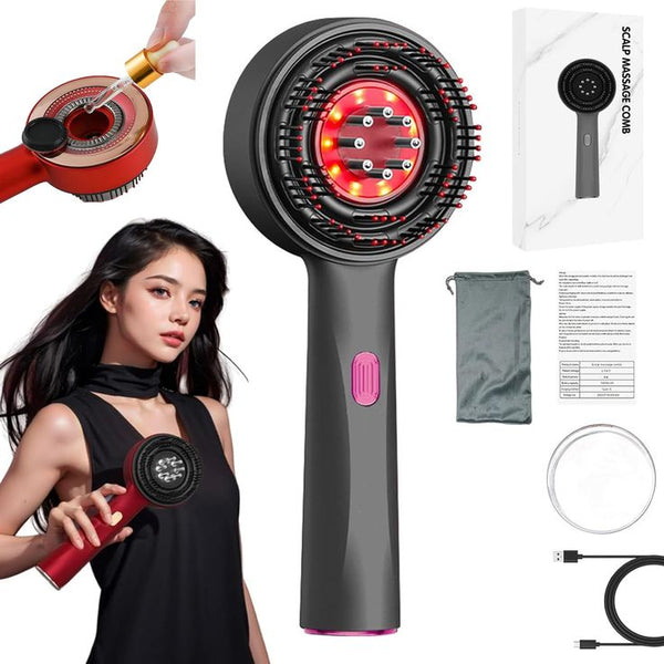 El peine eléctrico para masaje capilar combina tecnología y simplicidad para un cuidado eficaz del cabello en casa. Equipado con un sistema de vibraciones suaves y estimulantes, activa la microcirculación sanguínea y despierta los folículos pilosos. Su luminoterapia roja (655 nm) fortalece las raíces y favorece el crecimiento natural. Gracias a su aplicador de aceite integrado, los sérums y aceites capilares se distribuyen de manera uniforme, optimizando su eficacia. Compacto, ligero y ergonómico, se adapta perfectamente a la mano y es adecuado tanto para hombres como para mujeres. Fácil de usar, solo requiere de 5 a 10 minutos al día para obtener resultados visibles. Además, es recargable por USB y ofrece una larga autonomía, ideal para un uso regular o para llevar de viaje.